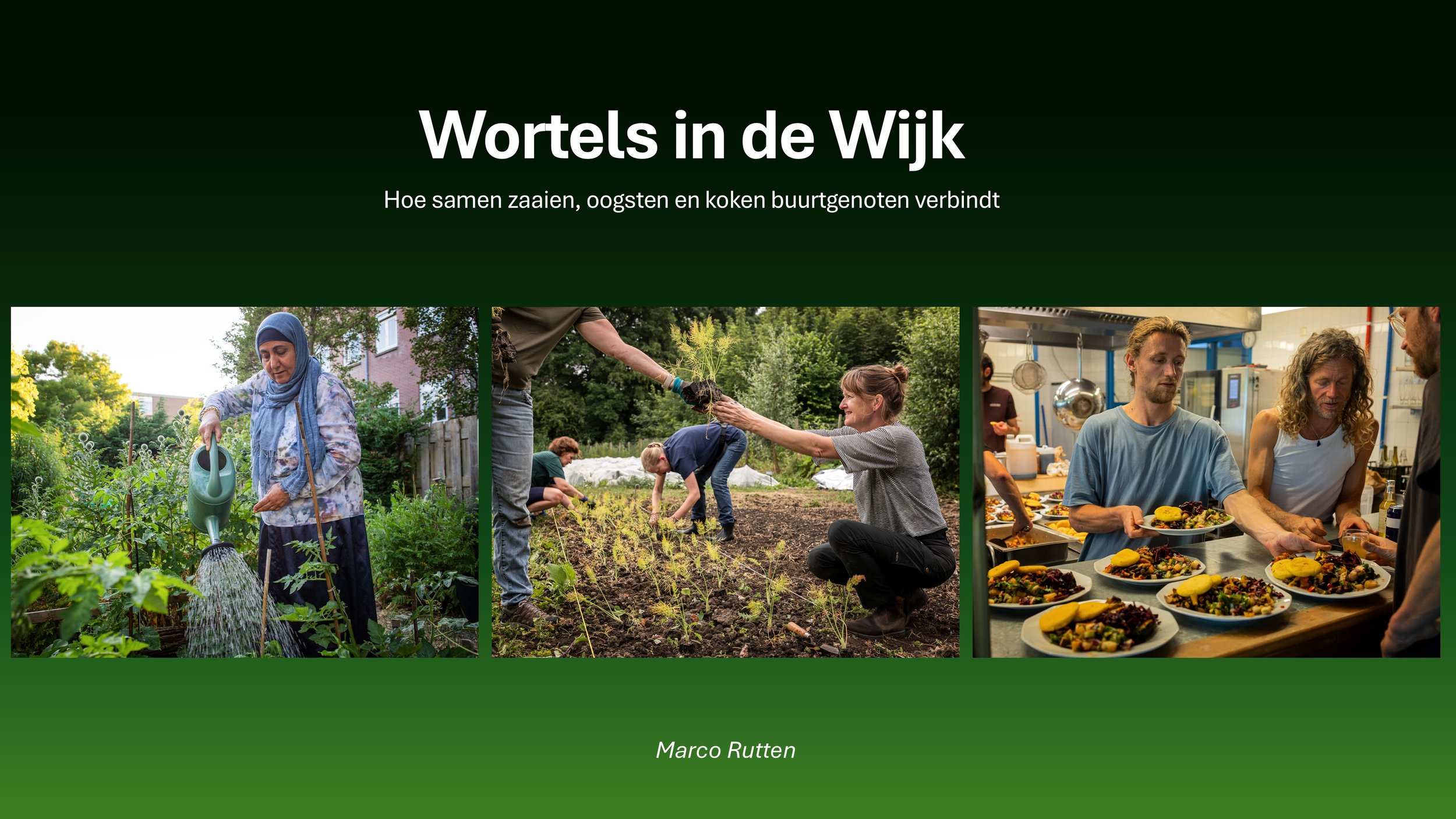 Fotograaf Marco Rutten legt de alledaagse rituelen vast: de kleine gesprekken, de gedeelde maaltijden, de handen in de aarde.Elk verhaal staat op zichzelf, maar samen tonen ze hoe voedsel in Den Haag buurtgenoten verbindt.