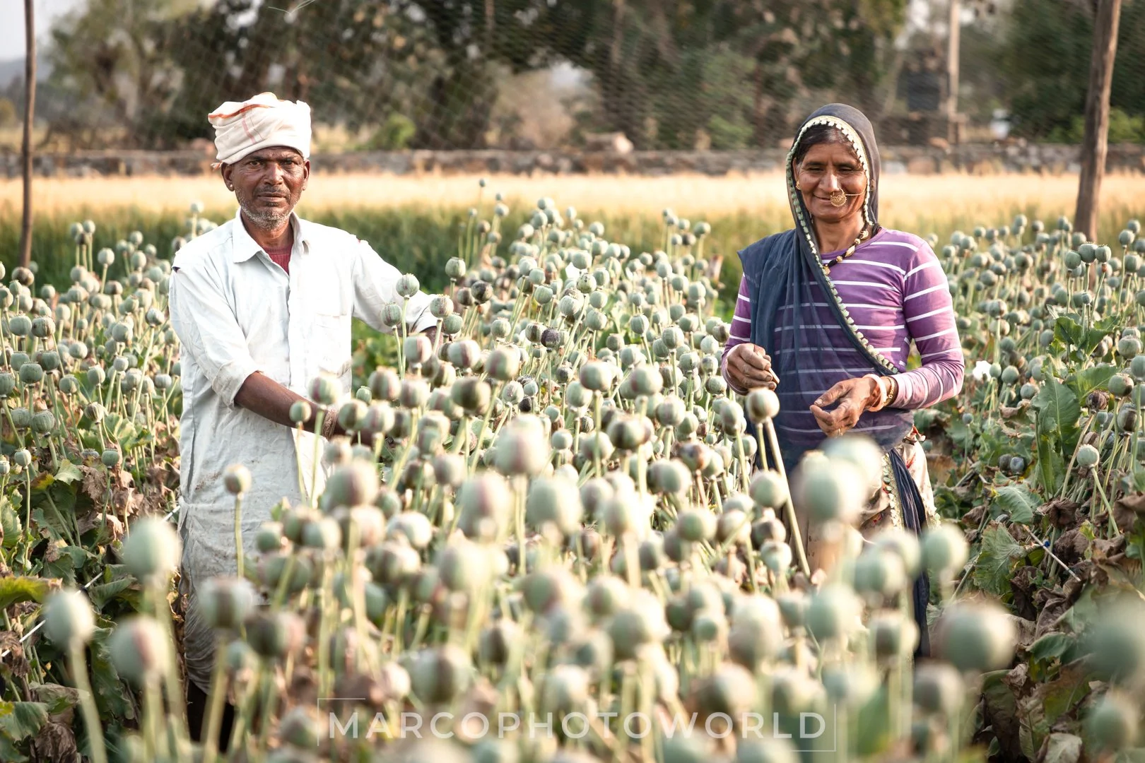 Opium poppy is grown legally in three states of India, including Rajasthan. It is a raw material for morphine, among other things (such as heroin). Because it fetch a lot on the black market, it is highly controlled. We have visited a village near Chittorgarh, which was relatively wealthy because of this agriculture